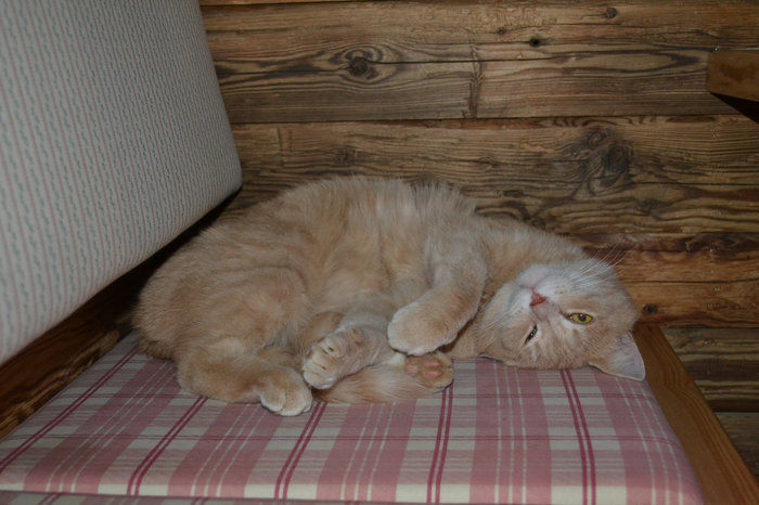 Die erste Zeit war ganz schön schwer für mich, aber mittlerweile habe ich ein gemütliches Plätzchen hinter der Rezeption gefunden, wo ich meine Ruhe habe und von allen mit Streicheleinheiten verwöhnt werde.