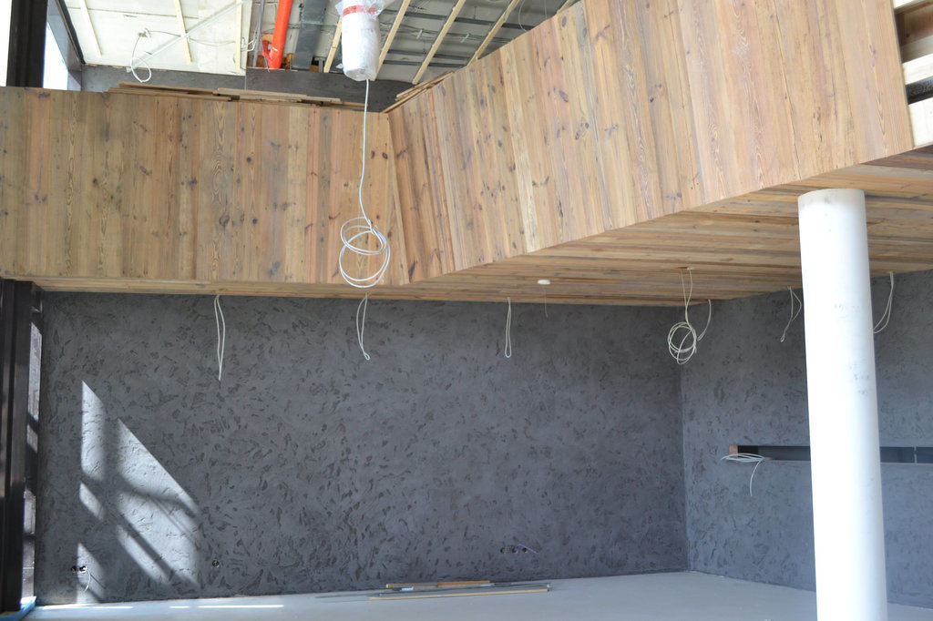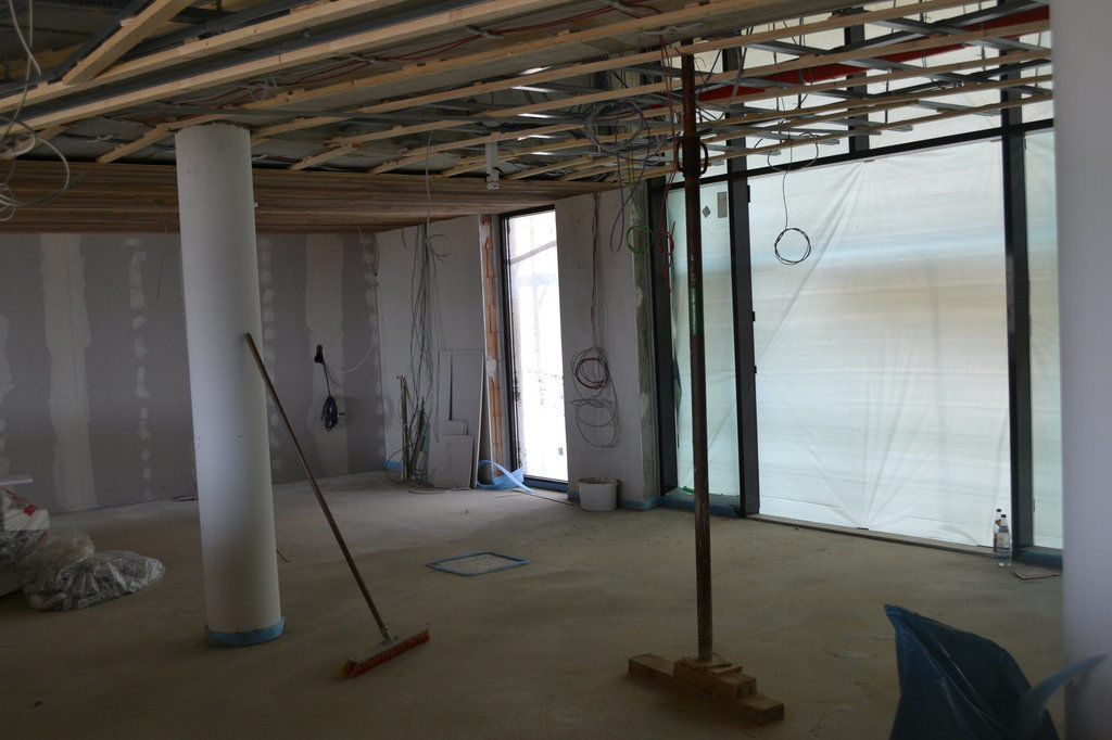 Der Innenausbau geht zügig voran, die Fliesen in der Lobby sind gelegt und auch der Windfang ist schon fertig.