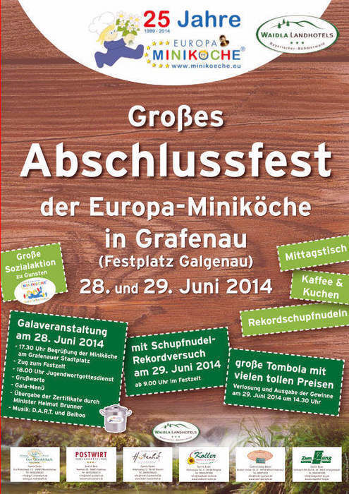Am kommenden Wochenende (28.06.2014-29.06.2014) findet das große Abschlussfest der Miniköche in Grafenau statt!