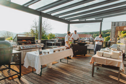 Wer die Stufen hinaufgeht, wird mit einem weiten Blick über den Bayerischen Wald belohnt,