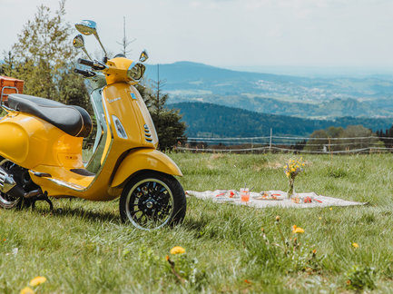 Die Region um Grainet ist bekannt für ihre atemberaubende Natur. Sanfte Hügel, dichte Wälder und klare Seen laden dazu ein, die Seele baumeln zu lassen. Ein Spaziergang oder eine Wanderung durch die unberührte Landschaft ist bereits ein Erlebnis für sich. Gerne helfen wir Ihnen bei der passenden Streckenauswahl weiter. Doch noch intensiver wird das Naturerlebnis, wenn Sie die Gegend auf zwei Rädern erkunden. Wenn es zu Fuß zu weit und mit dem Fahrrad zu beschwerlich ist, haben wir genau das richtige für Sie... Fahren mit der Vespa!