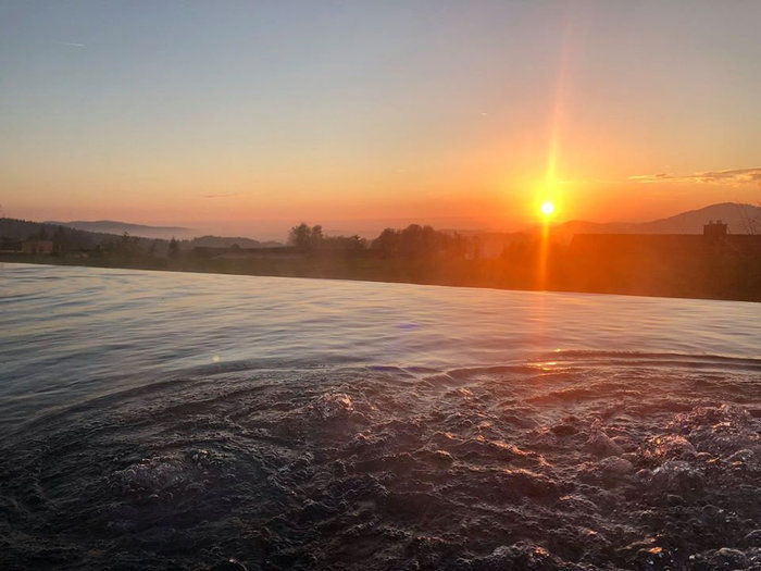 Ihr könnt mit Eurem Lieblingsmenschen unvergessliche Augenblicke erleben, indem Ihr einfach nur im Infinitypool chillt, Euch im Ruheraum erholt, frische Luft auf der Loggia einatmet oder Zweisamkeit im Whirlpool genießt. Zur richtigen Zeit erlebt Ihr von den verschiedensten Ecken im Hotel einen märchenhaften Sonnenuntergang. Und genau das sind die kleinen, besonderen Momente, die unvergessen bleiben. Die Kunst der Natur bestaunen, sich ganz eng zusammenkuscheln und die letzten Sonnenstrahlen des Tages einfangen.