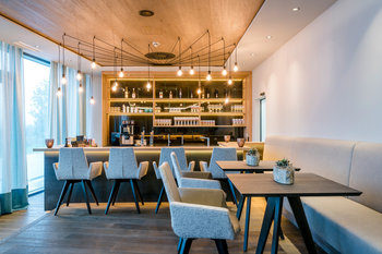 Ausgestattet mit gemütlichen Sitzmöglichkeiten und wohlig warmen Farben lädt unser SPA-Bistro zum Verweilen ein.