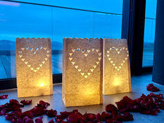 Ein Heiratsantrag am Valentinstag ist eine romantische und bedeutungsvolle Art, seine Liebe zu zeigen und den Beginn eines neuen Kapitels im Leben als Paar zu markieren. Planen Sie den Heiratsantrag bei uns im Hüttenhof als Überraschung, um die Spannung und den emotionalen Moment zu verstärken. Dieser Antrag ist eine wundervolle Idee, die sicherlich für immer in Erinnerung bleiben wird. Romantische Atmosphäre am Indoor-Pool, Kernzenschein, Rosenblüttenblätter und große Laternen auf denen die wichtigste Frage zu finden ist: "Willst Du mich heiraten?"