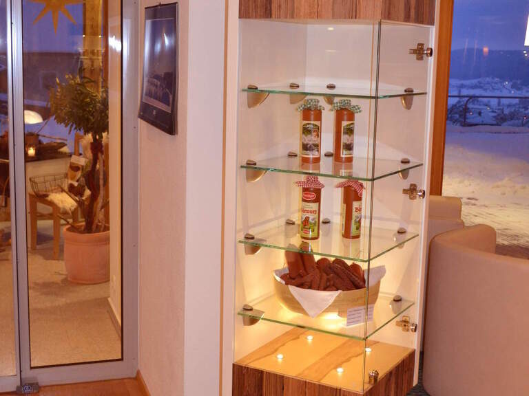 Ab sofort sind im Hüttenhof kulinarische Schmankerl aus der Region, wie zum Beispiel hausgemachte Marmeladen, Honig oder Essig erhältlich. Auch verschiedene Bäder und Cremes stehen zum Verkauf bereit.